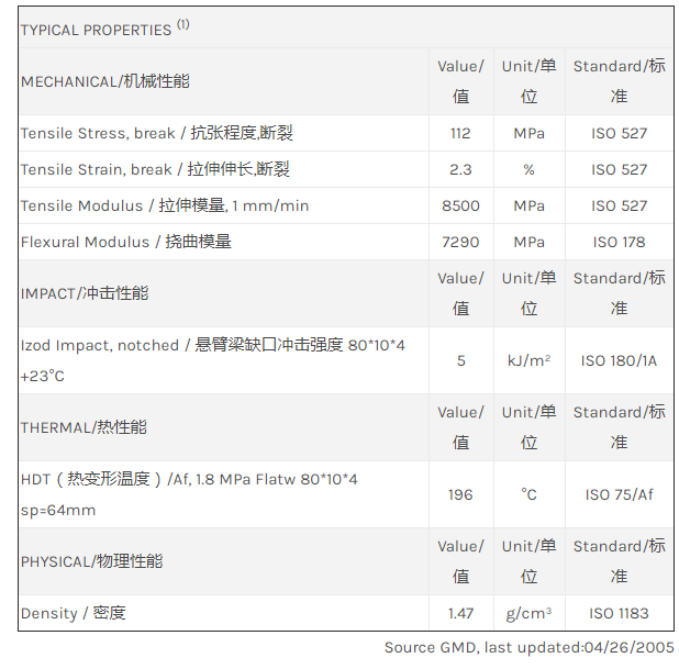 应用范围: 产品描述 LNP Thermocomp PFW53U物性表 “LNP THERMOCOMP PFW53U是一种聚酰胺6(尼龙6)材料,含有的填充物为玻璃\矿物。 LNP THERMOCOMP PFW53U的主要特性为:紫外线稳定。” LNP THERMOCOMP* PFW53U is a compound based on Nylon 6 resin containing Glass