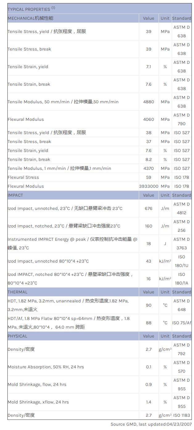 应用范围: 产品描述 LNP THERMOCOMP PH0270B物性表 LNP* Thermocomp* PH0270B is a compound based on Nylon 6 resin containing High Specific Gravity/比重 Filler. Added features of this material include: High Specific Grav