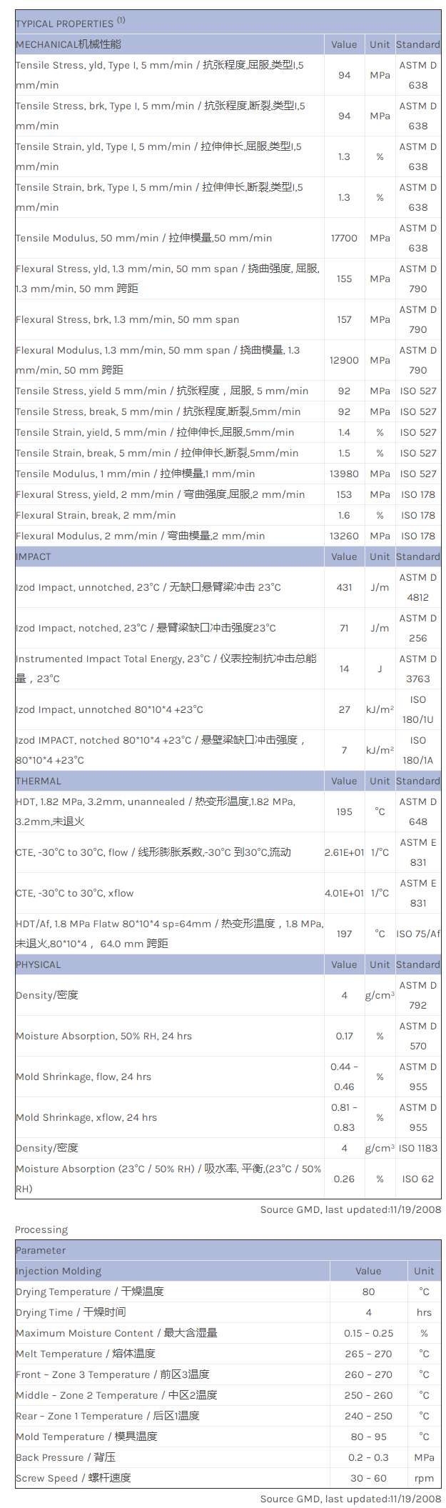 应用范围: 产品描述 LNP THERMOCOMP PH0400CX_BK1D466物性表 4.0 Specific Gravity/比重, Nylon 6