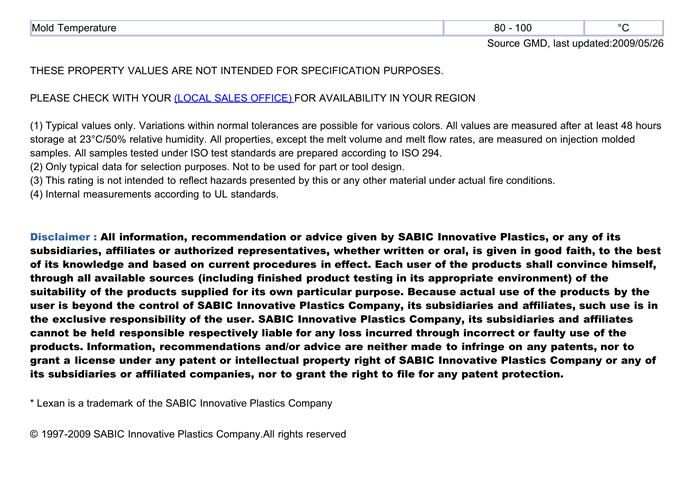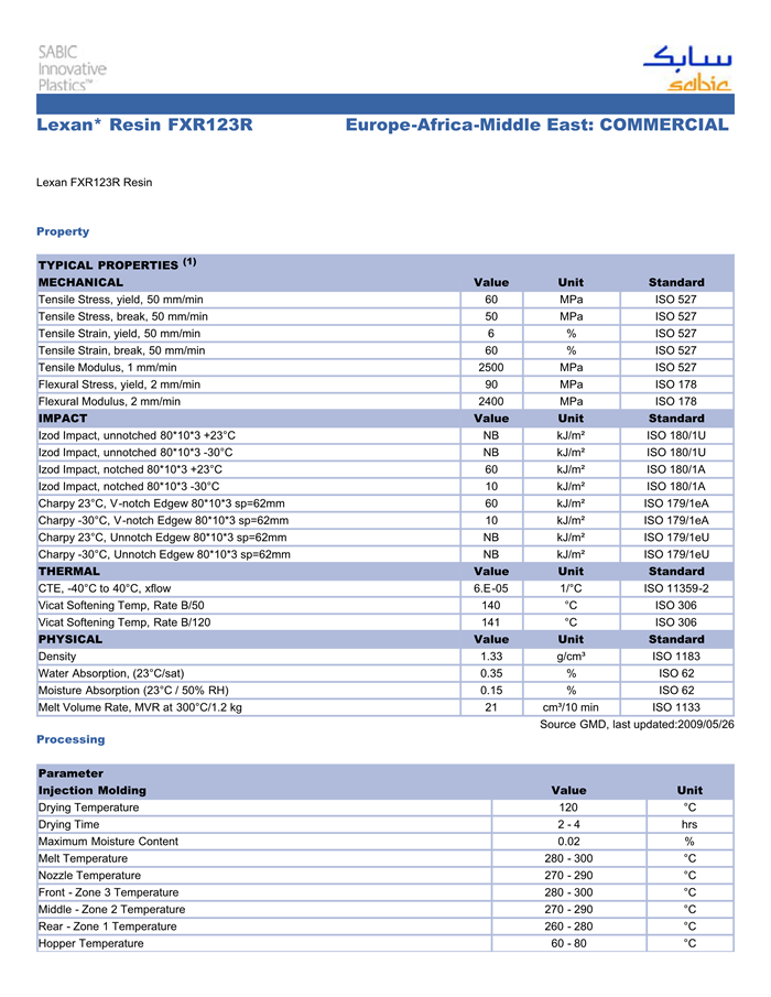 LEXAN PC FXR123R物性表