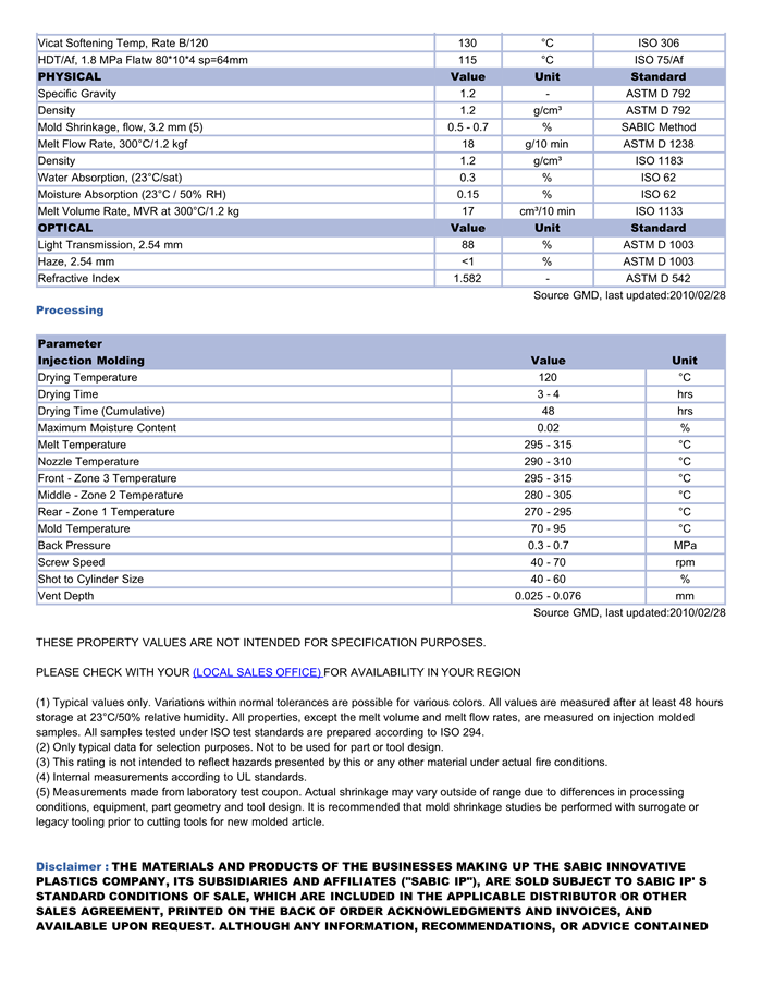 Lexan HFD1212 resin是一种聚碳酸酯(PC)产品,它可以通过注射成型进行加工。