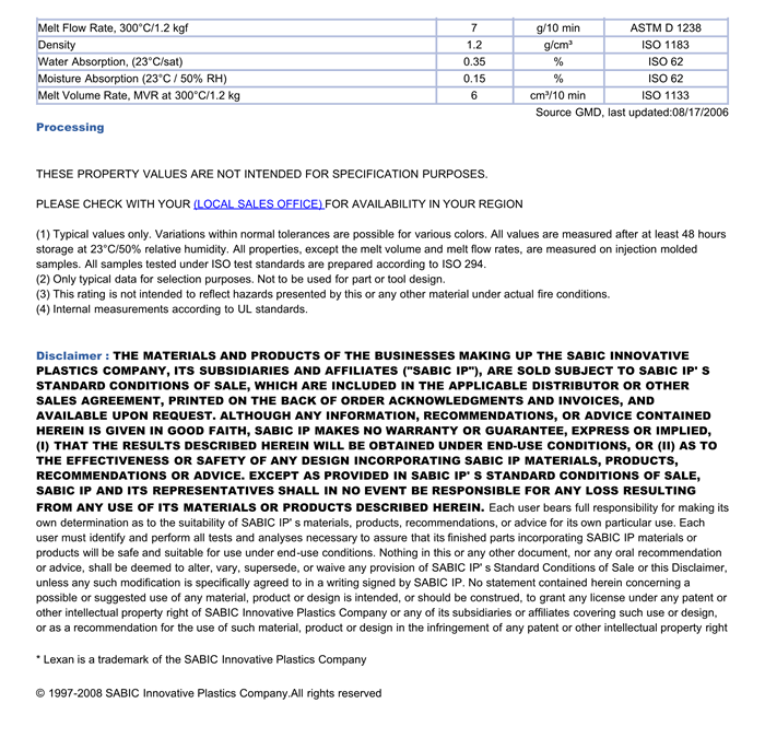 LEXAN PC ML1591物性表