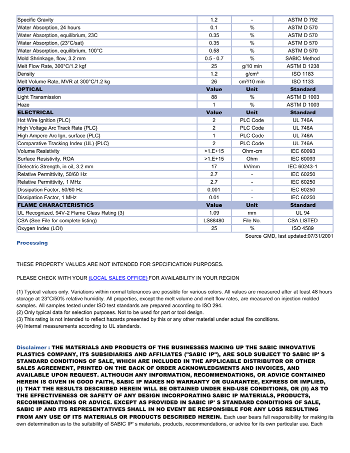 General purpose grade. Good clarity, heat resistance, property retention and dimensional stability.