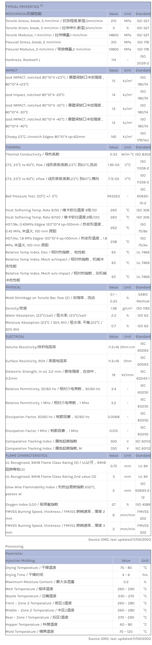 应用范围: 产品描述 LNP THERMOCOMP RF00A物性表 50% glass fibre reinforced Polyamide 66 injection moulding resin.