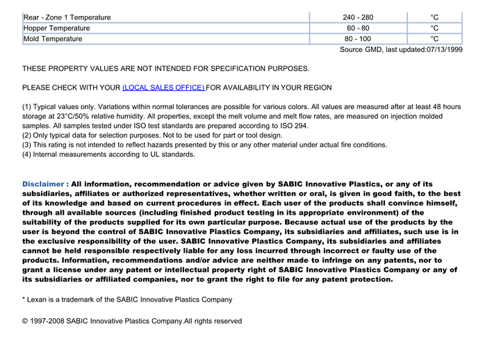 应用范围:产品描述LEXAN PC RL3814物性表LEXAN RL3814 is an excellent flowing material, especially designed for applications that require thin wall sections and higher flow lengths.