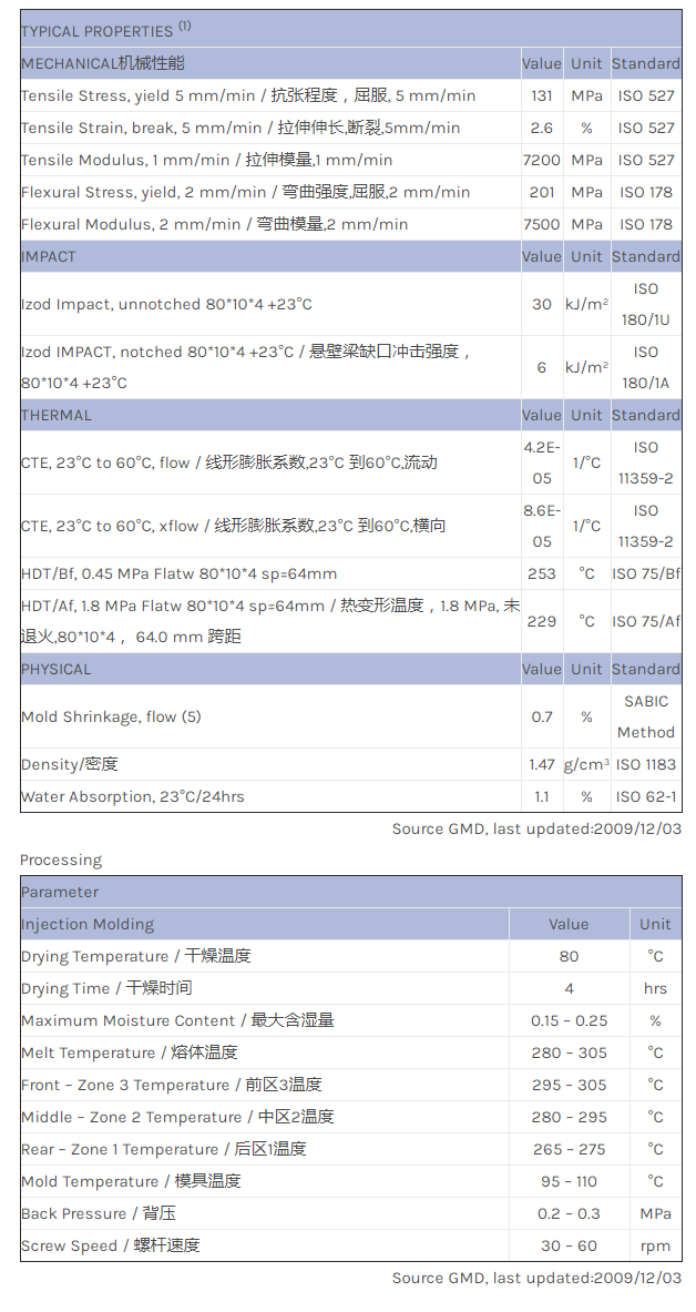 应用范围: 产品描述 LNP THERMOCOMP RFB53U物性表 LNP*THERMOCOMP*RFB53U is a compound based on PA 66 resin containing Glass Bead, Glass Fiber. Added features include: UV-Stabilized.