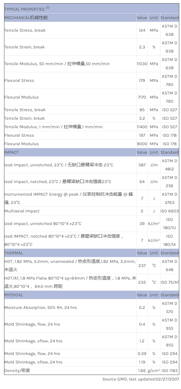 应用范围: 产品描述 LNP THERMOCOMP RFZ349物性表 LNP* Thermocomp* RFZ349 is a compound based on Nylon 66 resin containing Glass Fiber, Milled Glass. Added features of this material include: Flame Retardant.