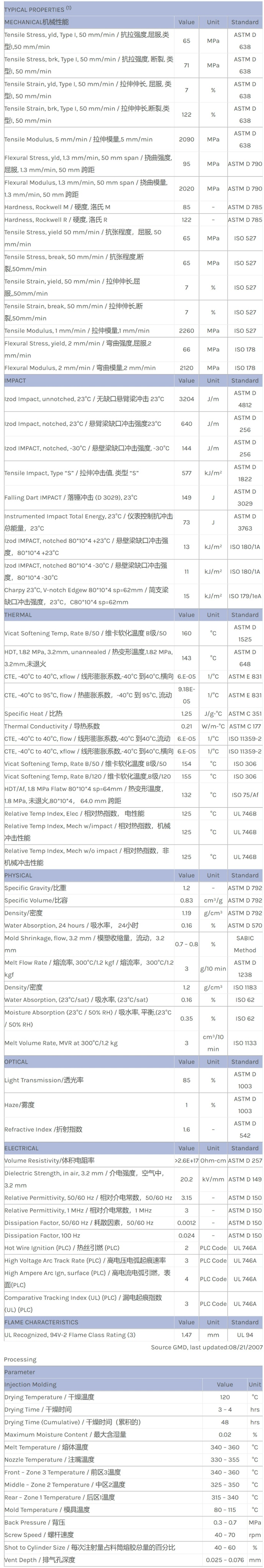Lexan HPH4504 resin是一种聚酯碳酸酯 (PPC)材料,加工方式为:注射成型。