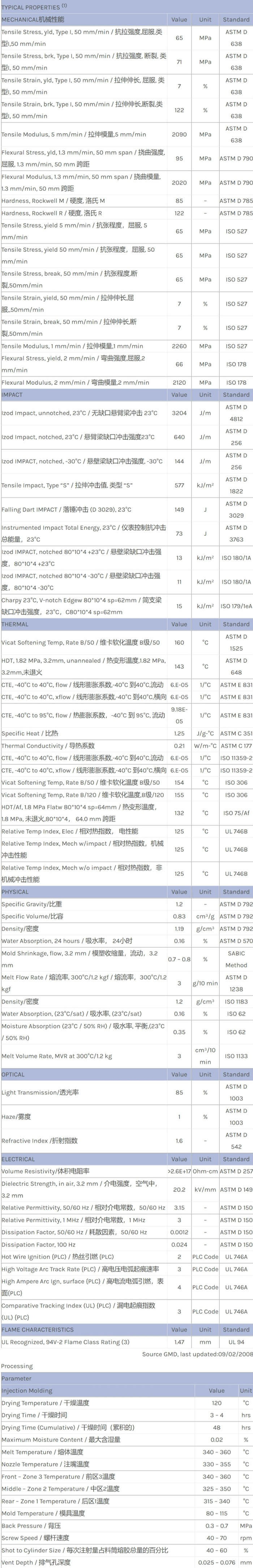 Lexan HPH4504H resin是一种聚酯碳酸酯 (PPC)产品,它可以通过注射成型进行加工。