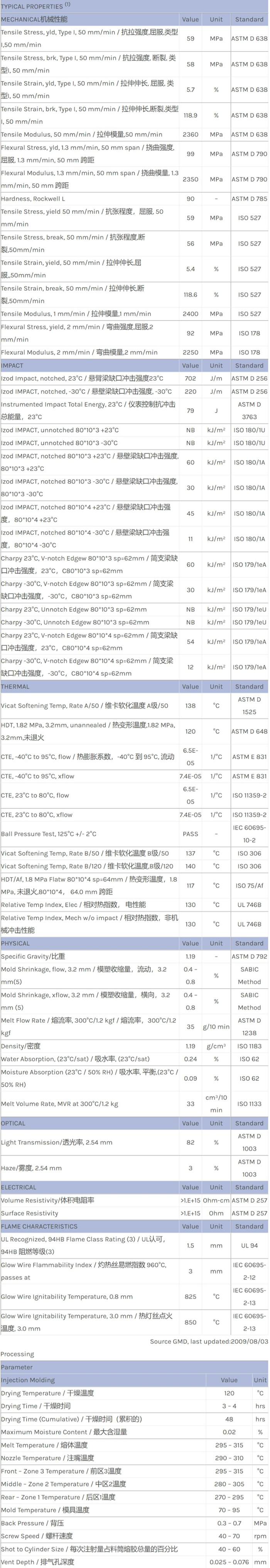 Lexan HPX8REU resin是一种聚碳酸酯(PC)材料,加工方式为:注射成型。
