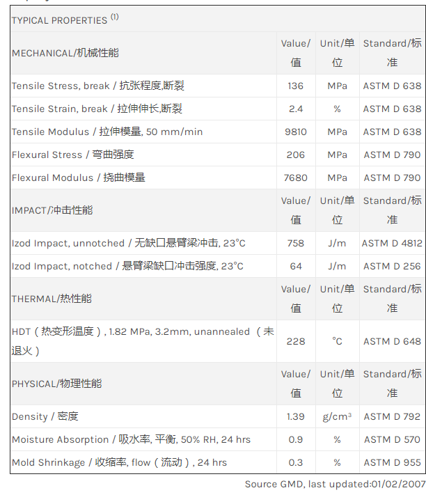 应用范围: 产品描述 LNP Thermocomp RX06421S物性表 “LNP THERMOCOMP RX06421S是一种聚酰胺66(尼龙66)产品,含有的填充物为30%玻璃纤维增强材料,可以通过注射成型进行加工。 特性包括: 加工性能良好 热稳定剂” LNP* Thermocomp* RX06421S is a compound based on Nylon 66 resin con