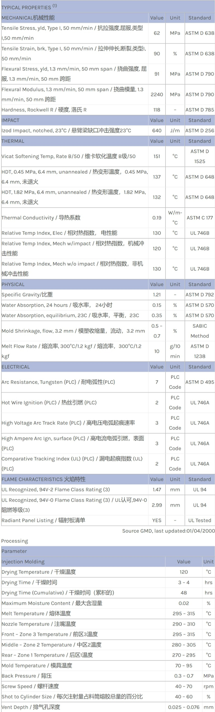 900系列标准阻燃牌号的更加完善的设计。内含脱模剂。