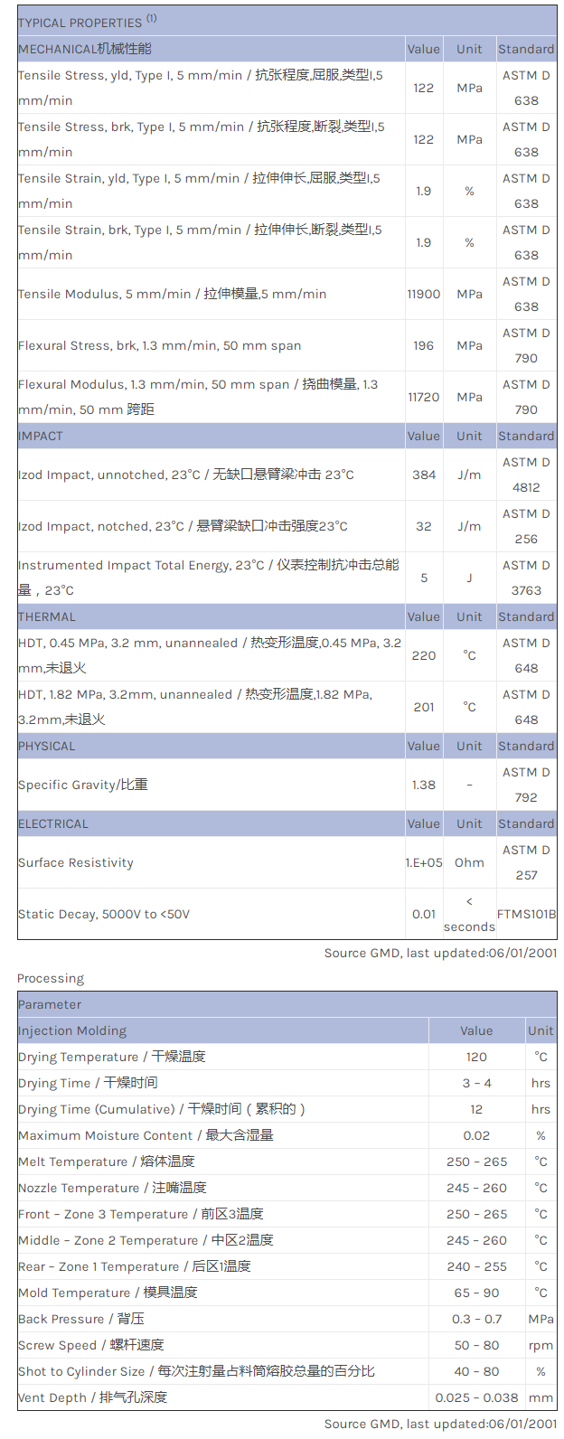 应用范围:产品描述LNP THERMOCOMP Valox_EXCP0054物性表PRELIMINARY DATA. 16% carbon fiber filled PBT. Solvent resistant.