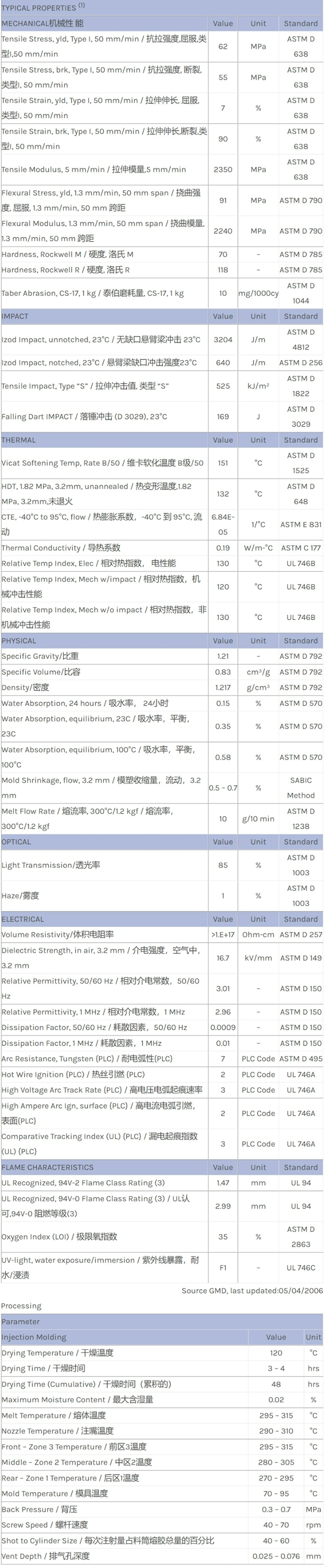 Lexan VR2920 resin是一种聚碳酸酯(PC)产品,它可以通过注射成型进行加工。