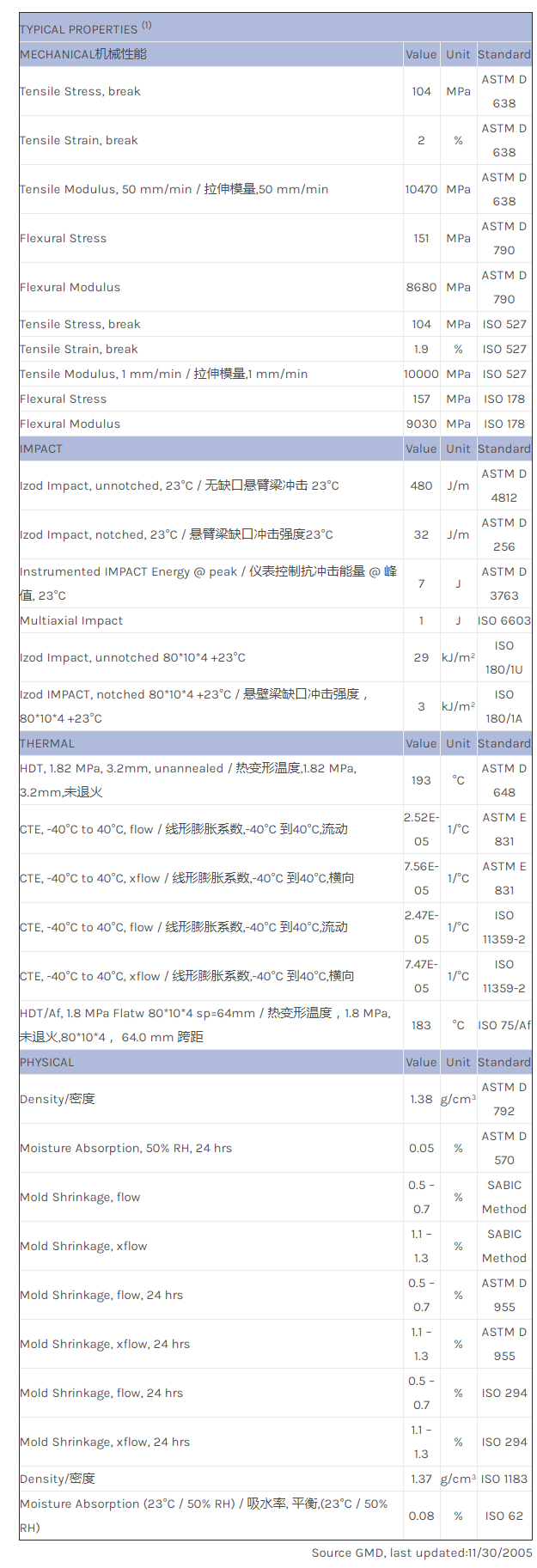应用范围: 产品描述 LNP THERMOCOMP WC003P物性表 LNP* Thermocomp* WC003P is a compound based on Polyester resin containing Carbon Fiber. Added features of this material include: Electrically Conductive.