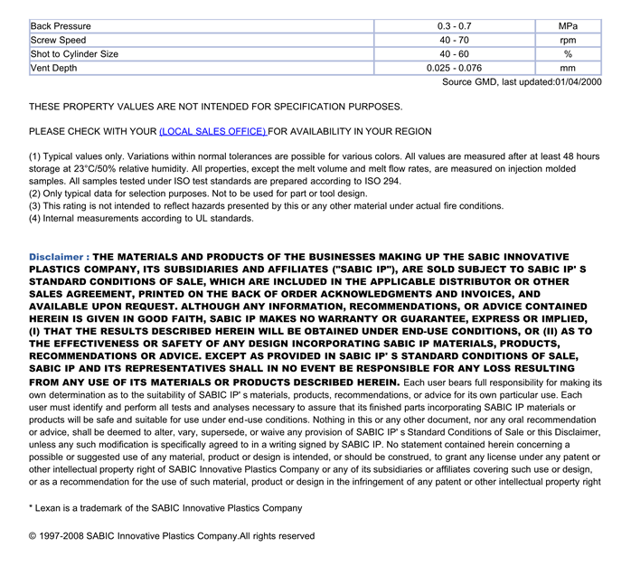 Lexan PC HF1130物性表