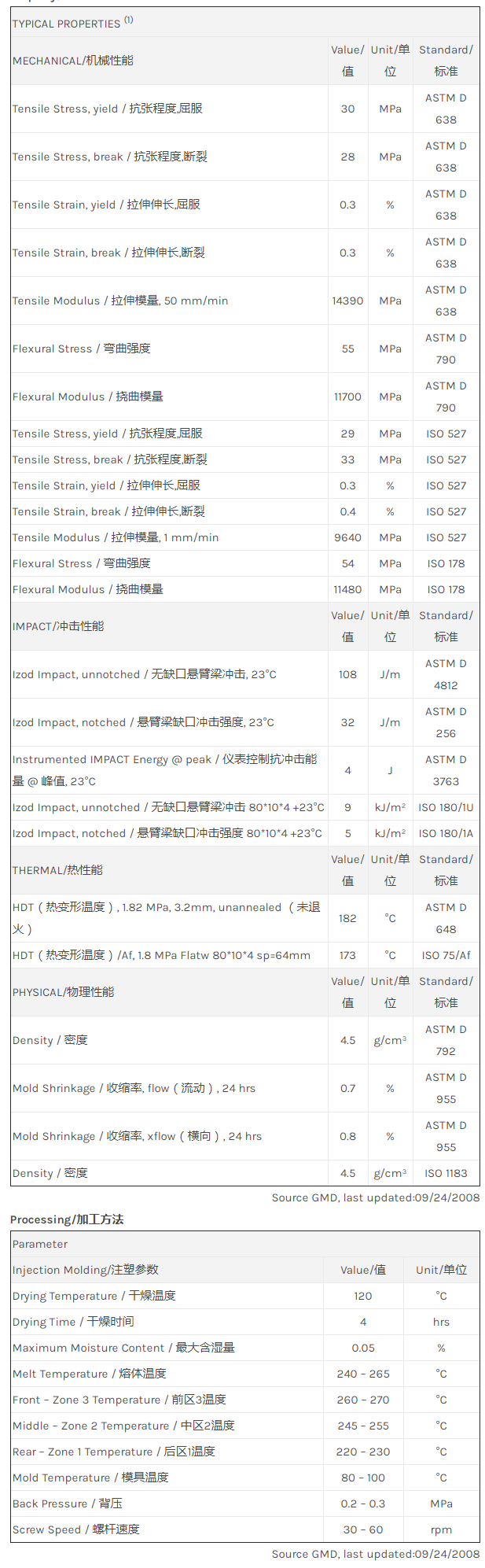 应用范围: 产品描述 LNP Thermocomp WH0450EX物性表 LNP THERMOCOMP WH0450EX是一种聚丁烯对苯二甲酸酯(PBT)材料,含有的填充物为专有填料,加工方式为:注射成型。 LNP* Thermocomp* WH0450EX is a compound based on Polybutylene Terephalate resin containing High