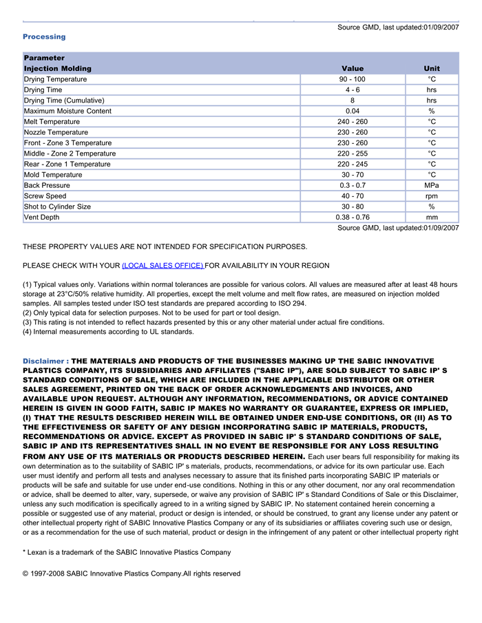 Lexan SLDM310 resin是一种聚碳酸酯(PC)材料,含有的填充物为矿物填料。加工方式为:注射成型。