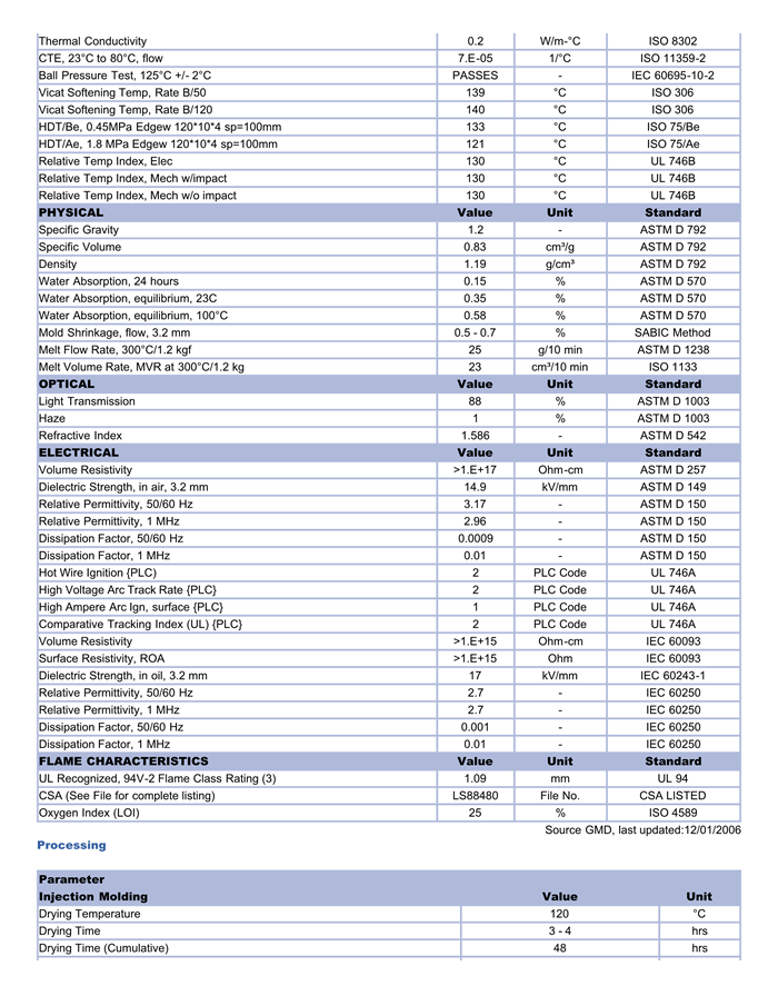 应用范围:产品描述Lexan PC HF1140物性表FDA 可承认。易处理、短使用周期物品的理想原料。 良好的清晰度、耐热性、性能保留性、尺寸稳定性。相关颜色色号:HF1140-111FC、HF1140-701Ideal for disposables/short life cycles. Good clarity, heat resistance, property retention and dime