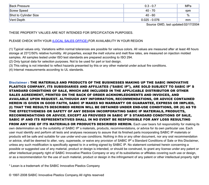 LEXAN PC ML7643物性表