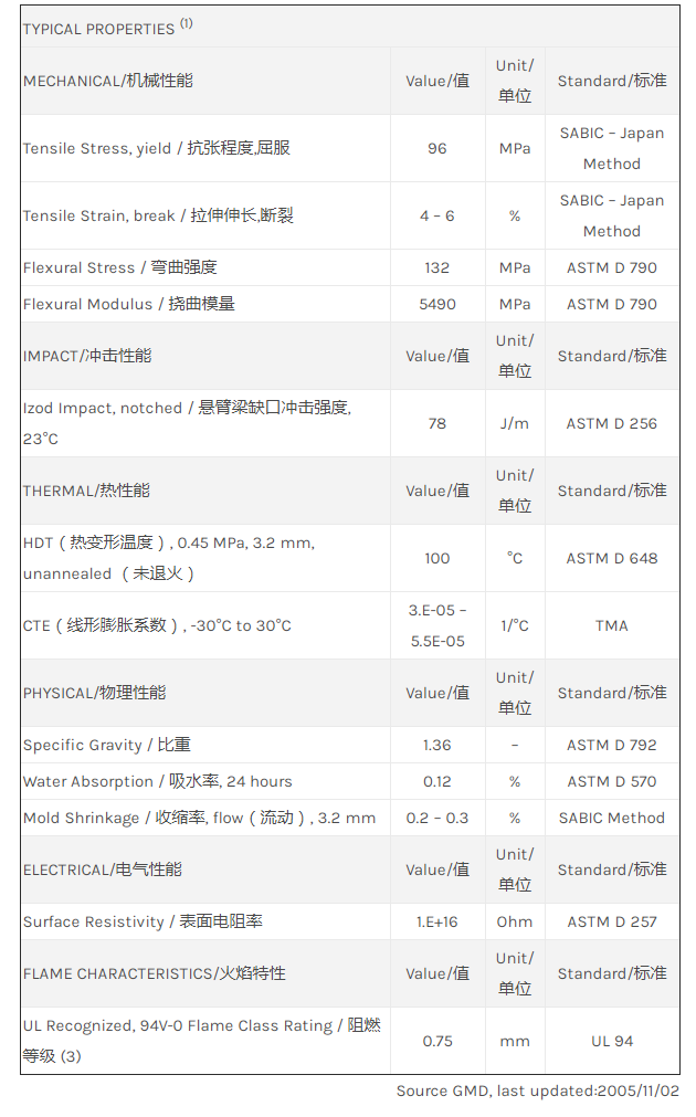 LNP THERMOCOMP Lexan_SP7604的主要特性为:阻燃/额定火焰。”