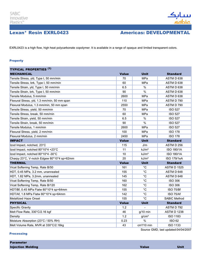 LEXAN PC EXRL0423物性表