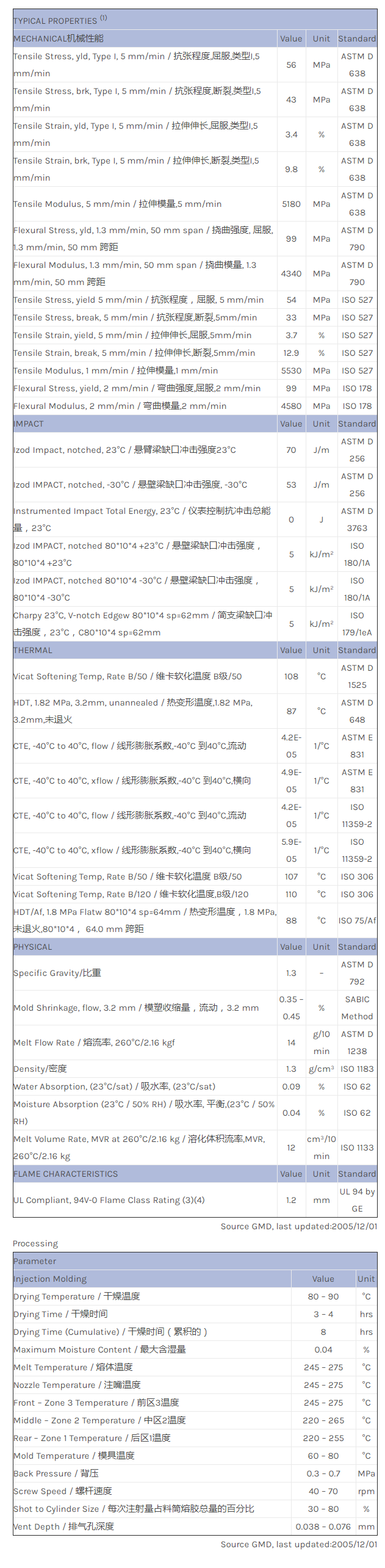 应用范围: 产品描述 LNP THERMOCOMP PDX04311物性表 PC/ABS, Talc 15% filled, Non Halogen FR V-0 @1.2mm