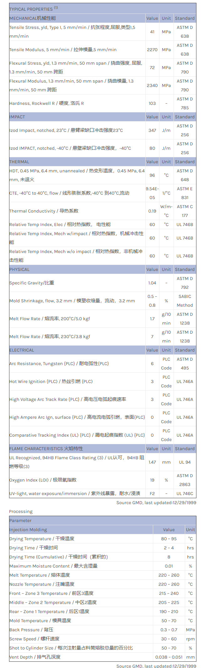 应用范围:产品描述CYCOLAC ABS GAP1物性表Non-Flame Retardant