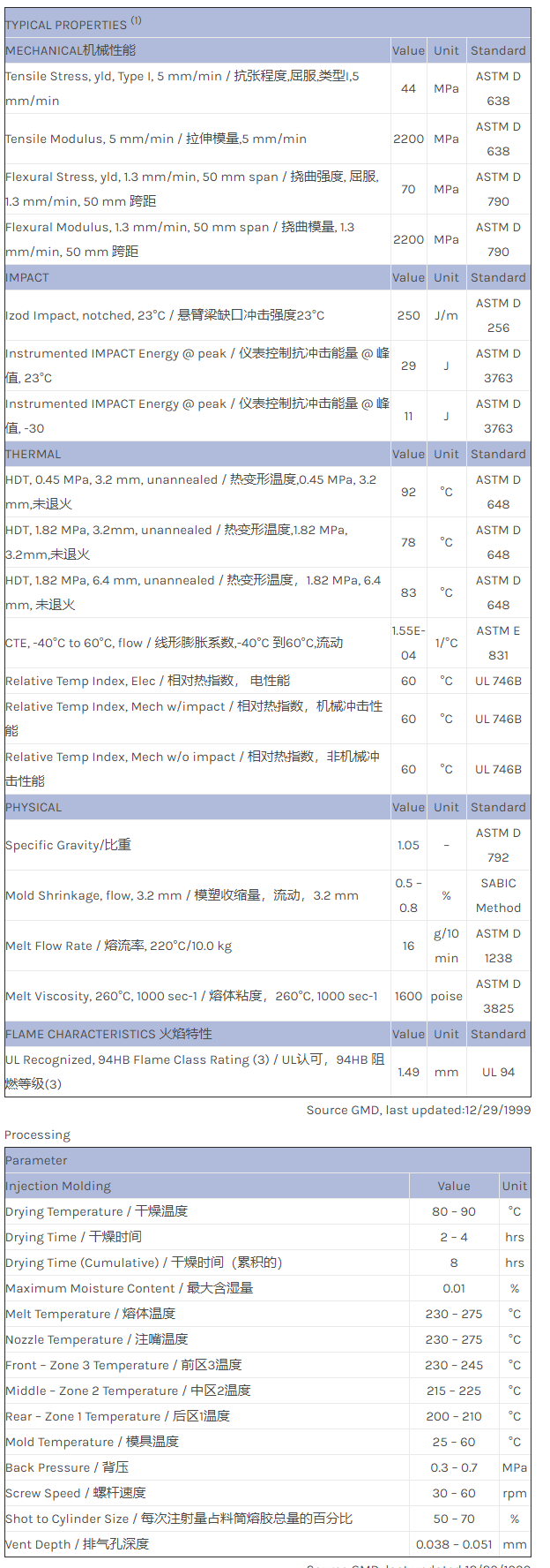 CYCOLAC ABS GDT6400物性表