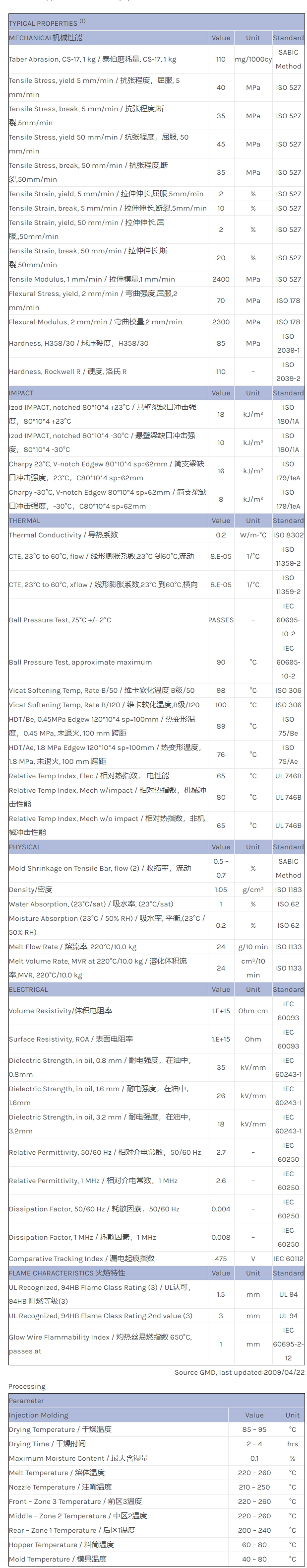 应用范围:产品描述CYCOLAC ABS GPM5500U物性表CYCOLAC GPM5500U is a UV stabilized multi purpose injection moulding grade, providing a favourable balance of engineering properties. CYCOLAC GPM5500U has a wide processing