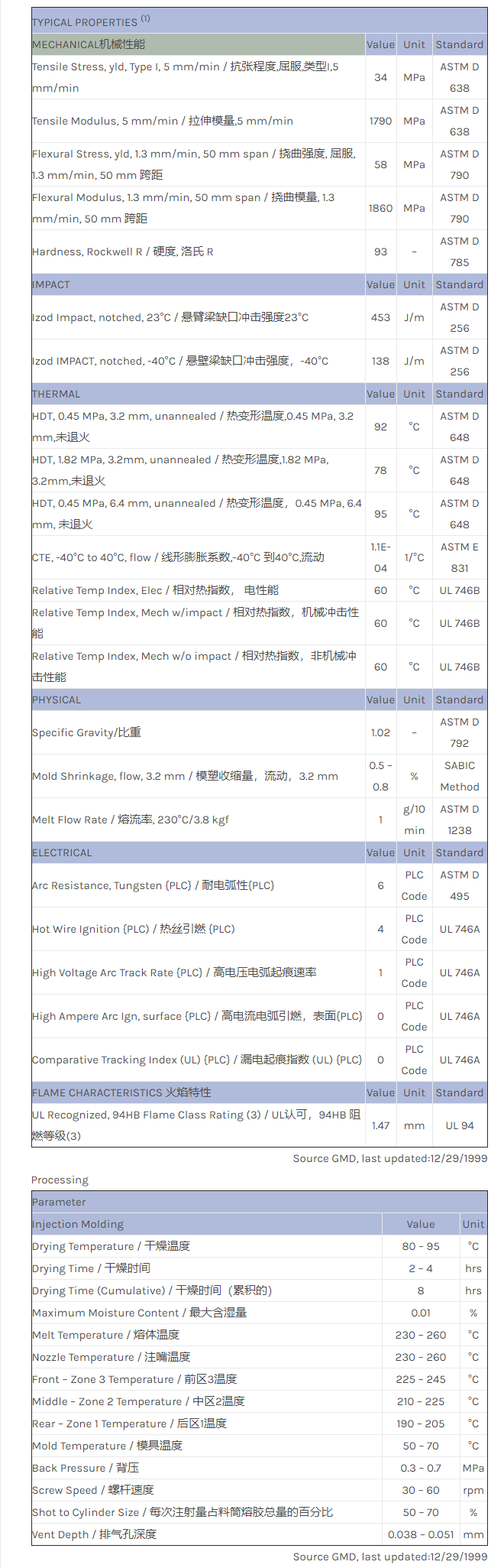 CYCOLAC ABS L物性表
