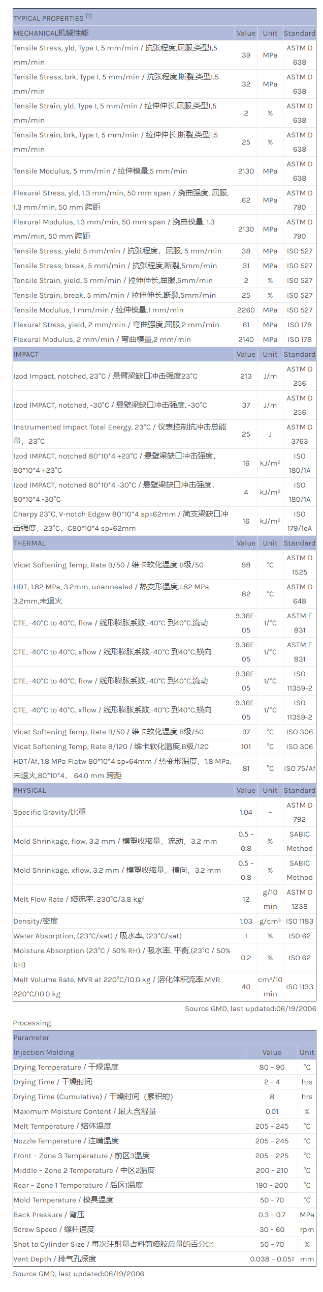 应用范围:产品描述CYCOLAC ABS MG34LGHF物性表Low gloss, high flow ABS for unpainted interior applications.