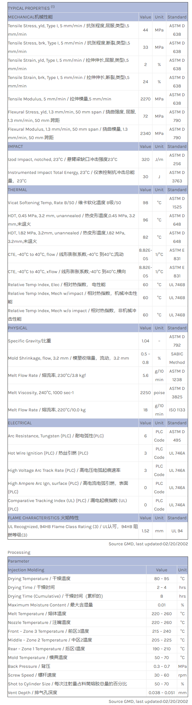 应用范围:产品描述CYCOLAC ABS MG47N物性表Cycolac MG47N 是一种丙烯腈丁二烯苯乙烯(ABS)材料,加工方式为:注射成型。Cycolac MG47N 的主要特性为:阻燃/额定火焰。Cycolac MG47N 的典型应用领域为:水管/管道/饮用水相关色号:MG47N-NA1000、MG47N-WH9A333、MG47N-BR8A092