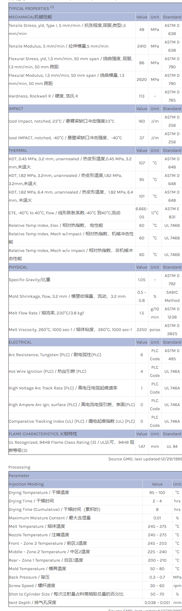 主要特点:甚高耐热性,高强度,高模量,额定UL94 HB值。