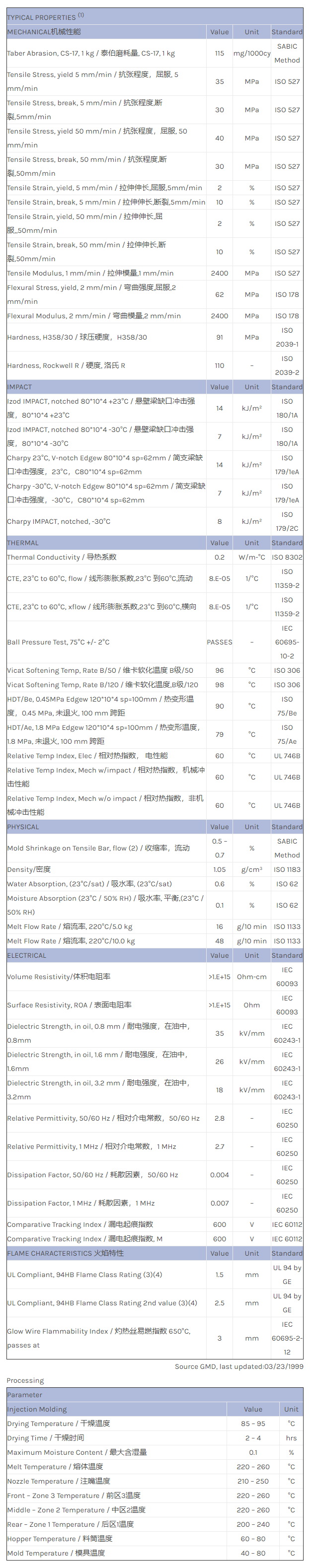 应用范围:产品描述CYCOLAC ABS XS701T物性表CYCOLAC XS701T is a new developed ABS providing a superior balance of properties. Its wide processing window, excellent flow and good MECHANICAL机械性能 properties give this mater
