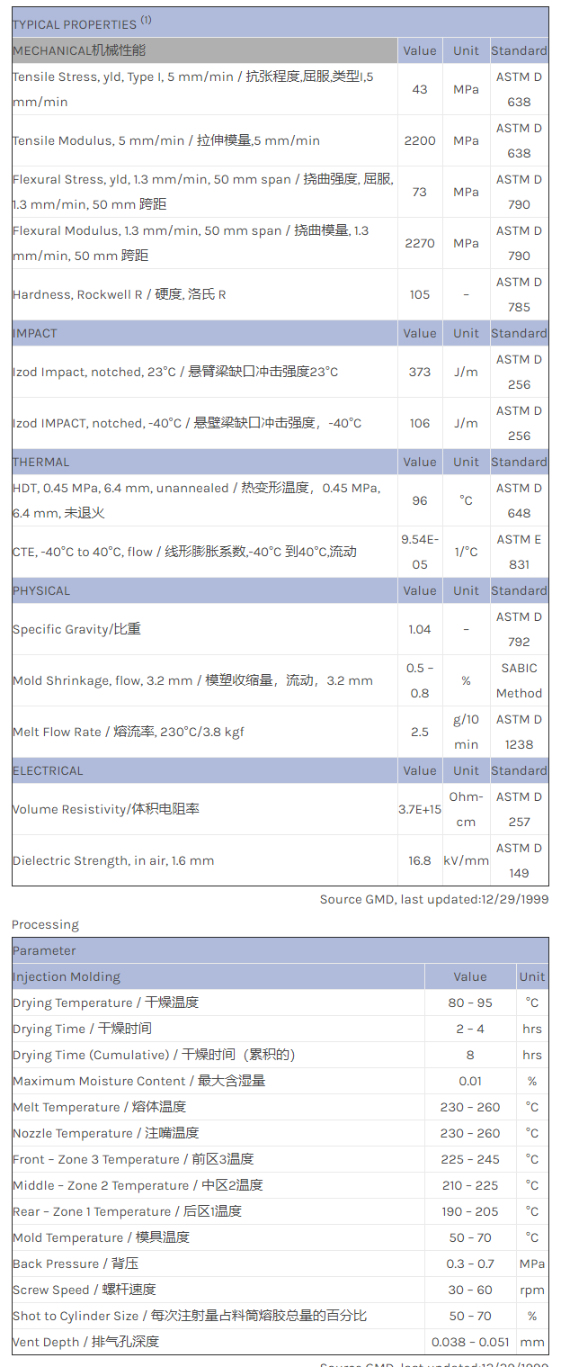 应用范围:产品描述CYCOLAC ABS Z65物性表Limited color selection. Minimum order size: Truckload