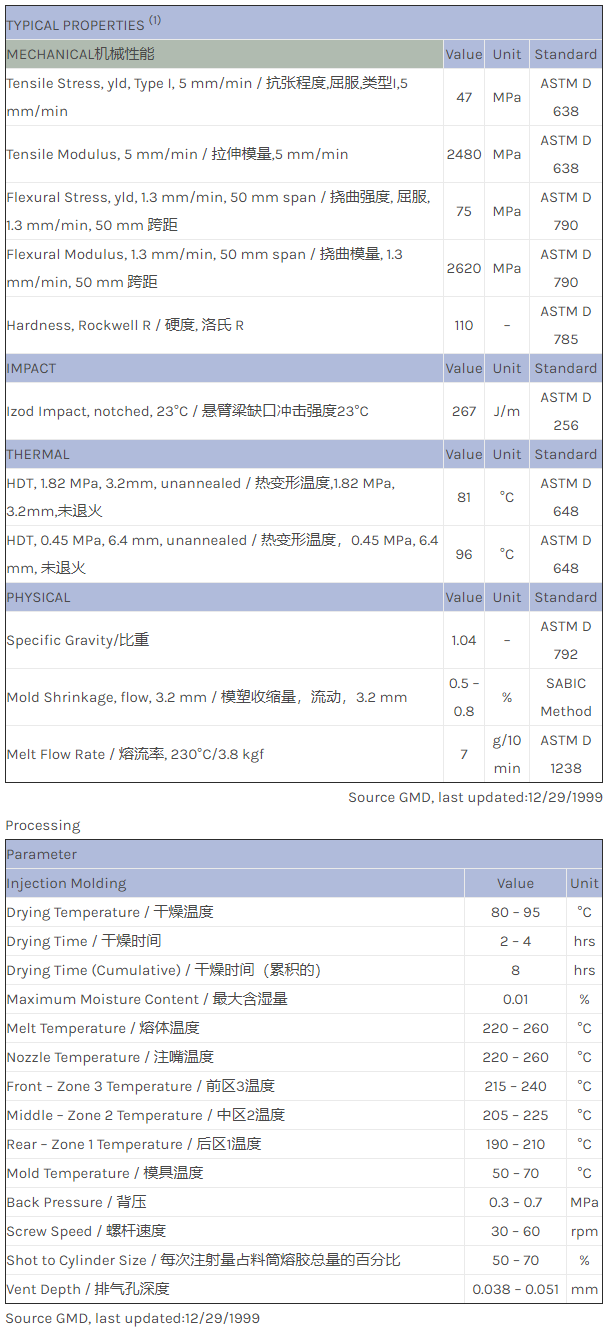 CYCOLAC ABS HP30物性表