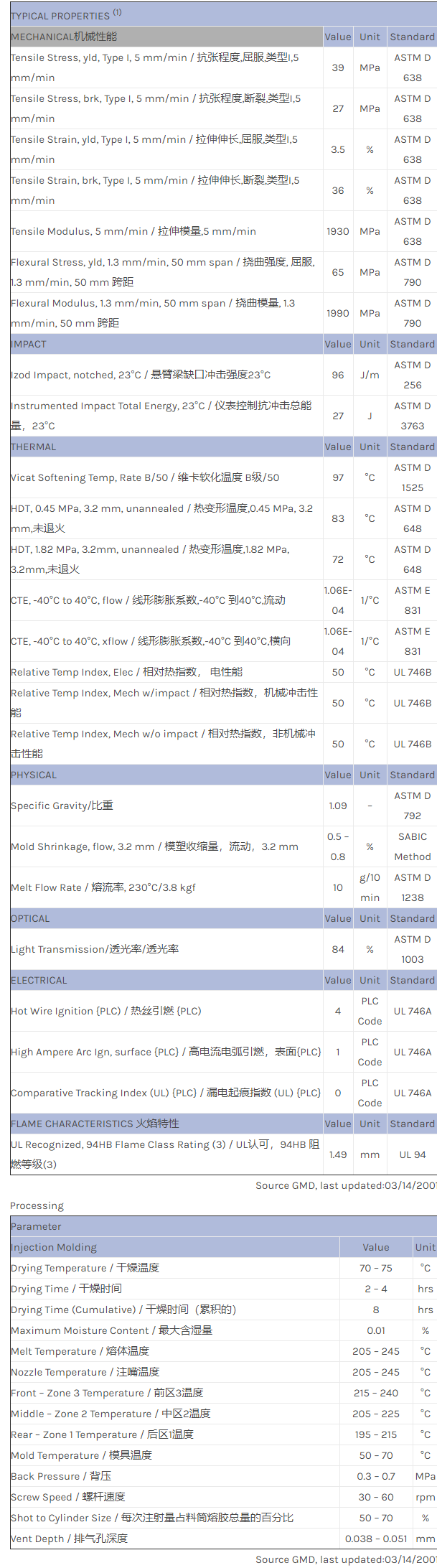 应用范围:产品描述CYCOLAC ABS CTR52物性表Clear ABS. Vacuum cleaner and telephone parts.