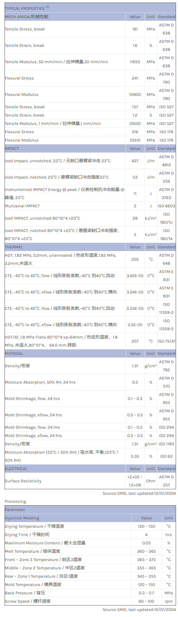应用范围: 产品描述 LNP THERMOCOMP EC002E物性表 LNP THERMOCOMP* EC002E is a compound based on Polyetherimide resin containing Carbon Fiber. Added features of this material include: Easy Molding.