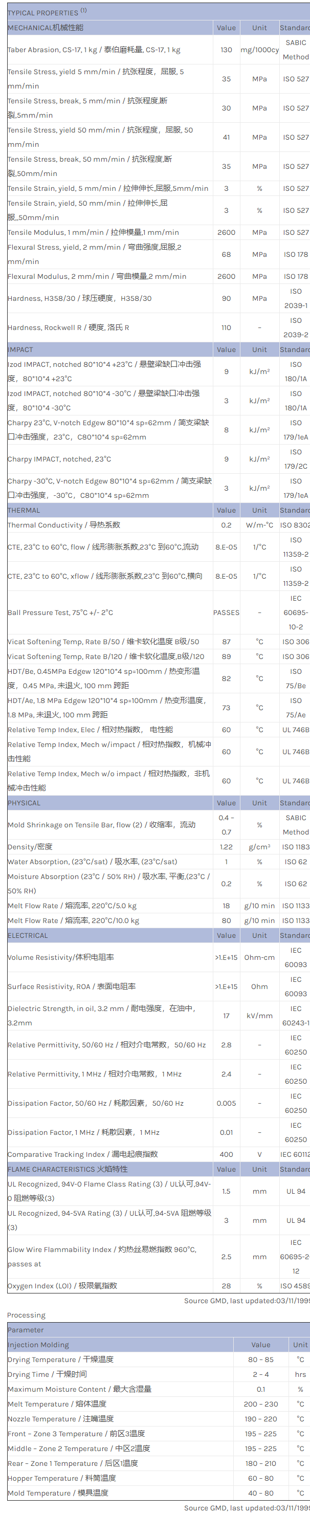 CYCOLAC ABS G151物性表