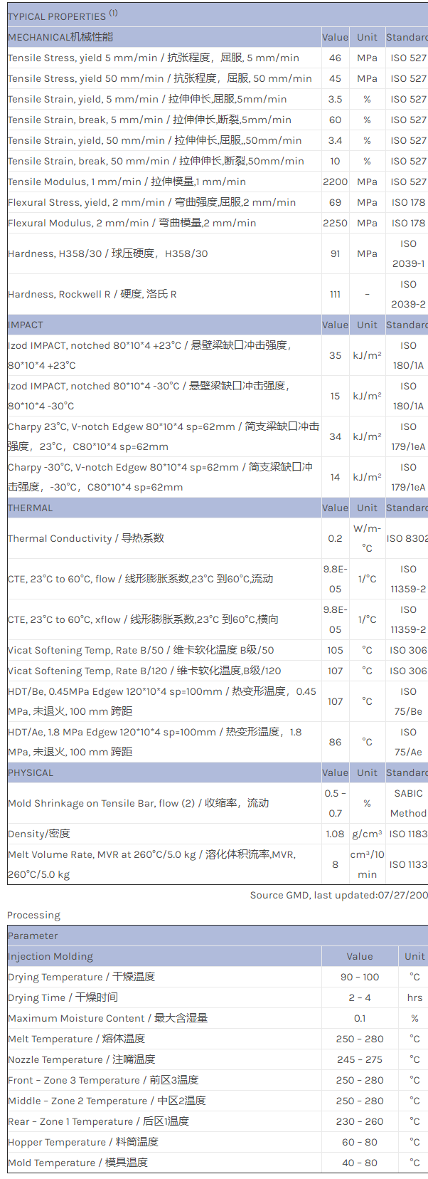 应用范围:产品描述CYCOLAC ABS DL150物性表CYCOLAC DL150 is a high heat, high IMPACT ABS/PC blend.