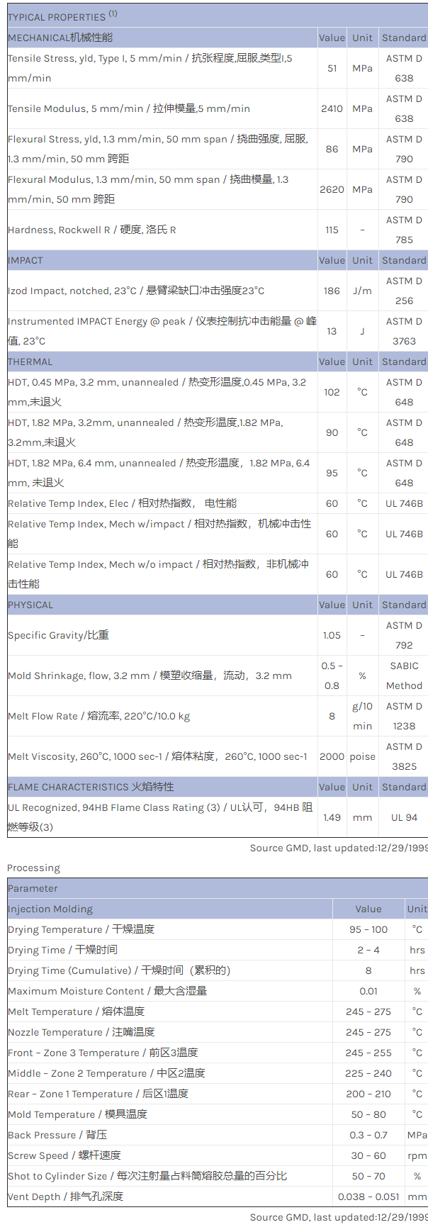 CYCOLAC ABS GHT4320物性表