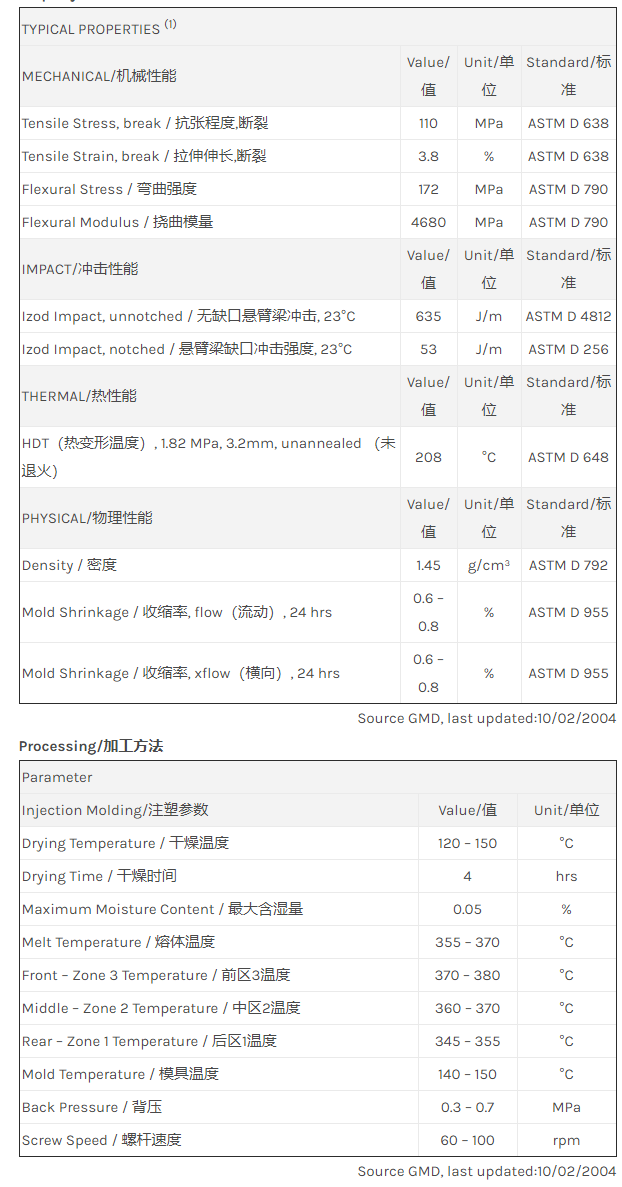 应用范围: 产品描述 LNP Thermocomp JF002物性表 LNP THERMOCOMP JF002是一种聚醚砜(PES)材料,含有的填充物为玻璃纤维增强材料,加工方式为:注射成型。 LNP THERMOCOMP* JF002 is a compound based on Polyethersulfone resin containing Glass Fiber. Property/特性