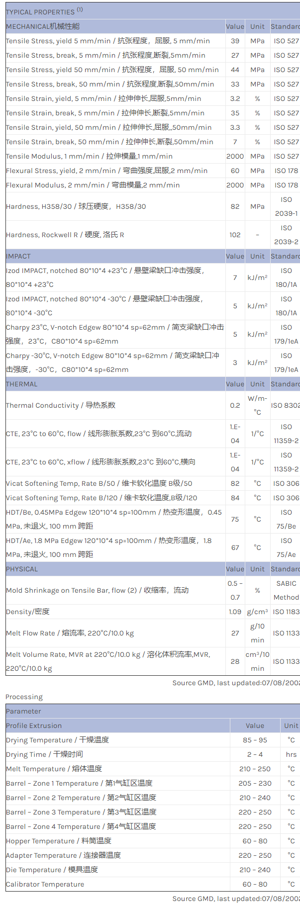 CYCOLAC ABS 29423B物性表