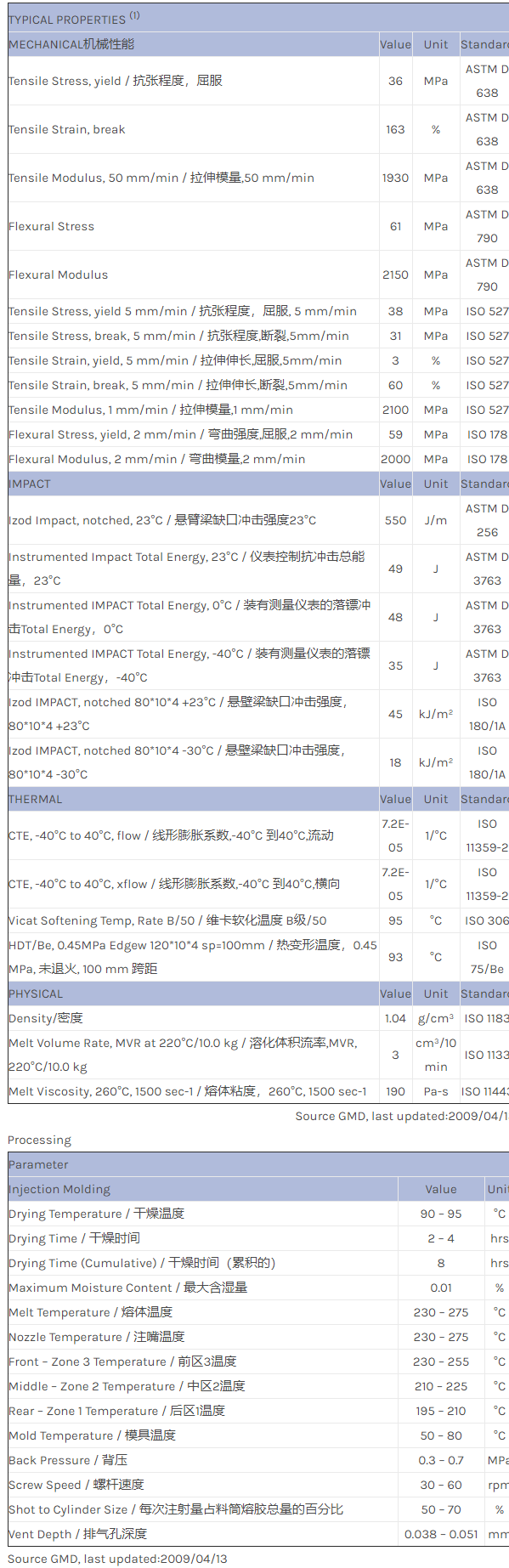 CYCOLAC ABS EXCC0011物性表