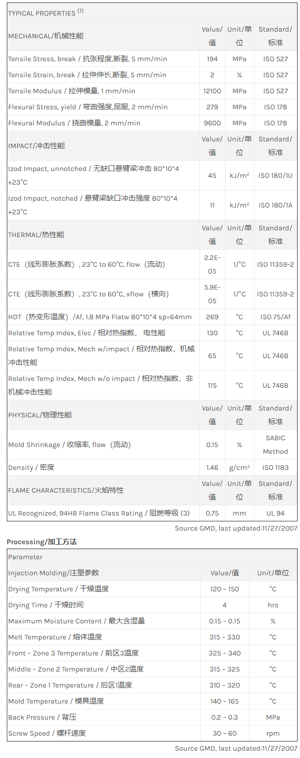 “肇庆LNP THERMOCOMP UF007AS是一种聚二甲苯酰胺(PPA)材料,含有的填充物为玻璃纤维增强材料,加工方式为:注射成型。
