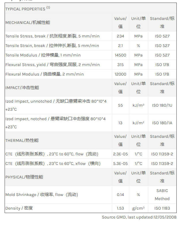 应用范围: 产品描述 LNP Thermocomp UF008AR物性表 “LNP THERMOCOMP UF008AR是一种聚二甲苯酰胺(PPA)材料,含有的填充物为玻璃纤维增强材料。 LNP THERMOCOMP UF008AR的主要特性有: 通过ROHS认证 脱模剂” LNP* THERMOCOMP* UF008AR is a compound based on Polyphthalam