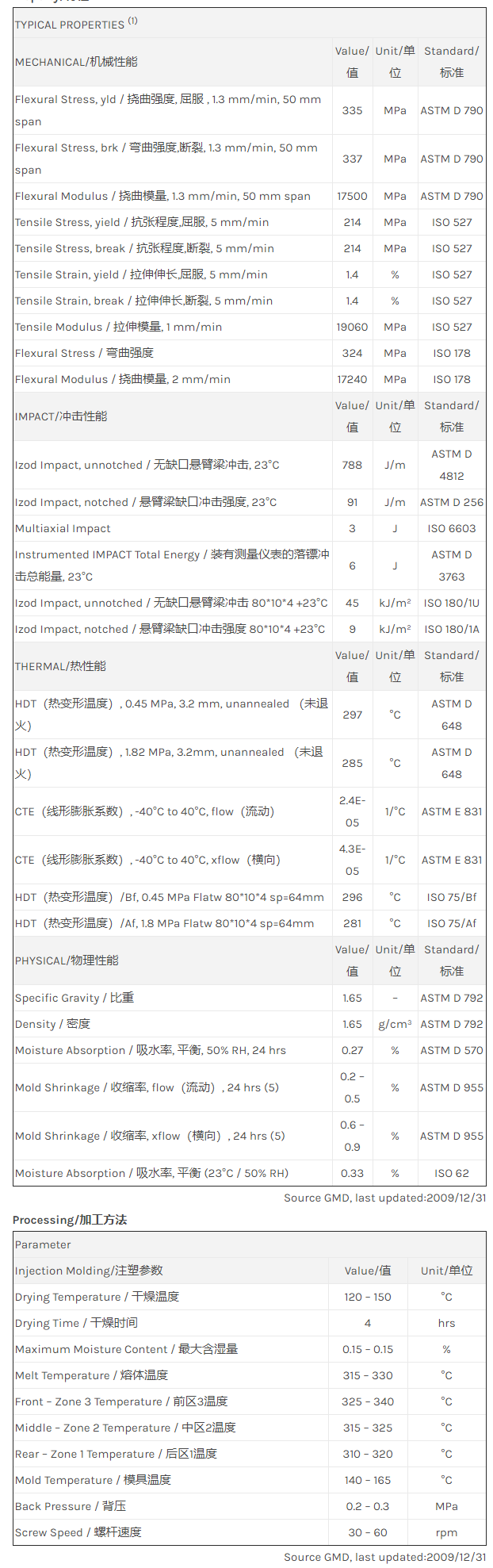 应用范围: 产品描述 LNP Thermocomp UF00ASW物性表 “LNP THERMOCOMP UF00ASW是一种聚二甲苯酰胺(PPA)产品,含有的填充物为玻璃纤维增强材料,可以通过注射成型进行加工。 主要特性为:热稳定剂。” LNP* Thermocomp* UF00ASW is a compound based on Polyphthalamide (PPA) containing