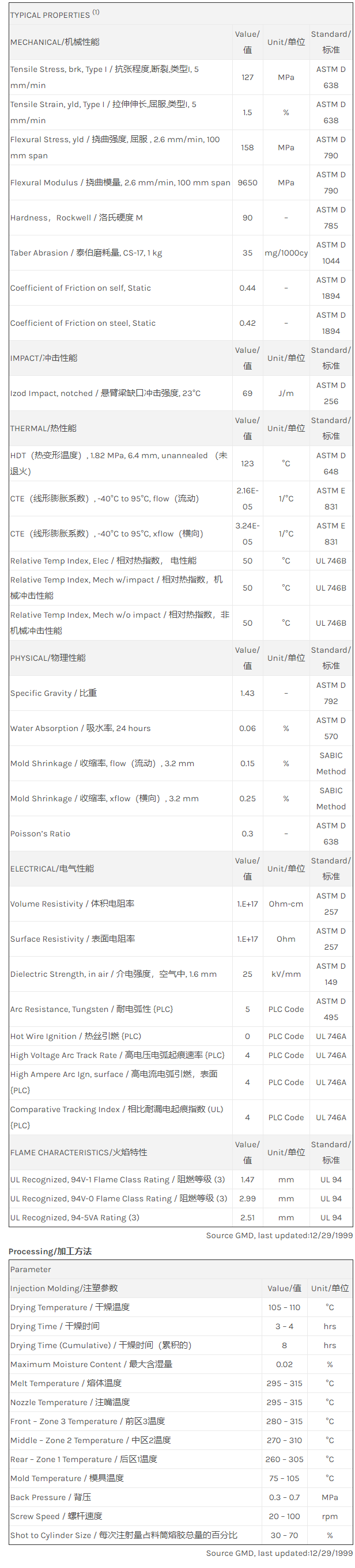 肇庆LNP Thermocomp Noryl_HM4025物性表