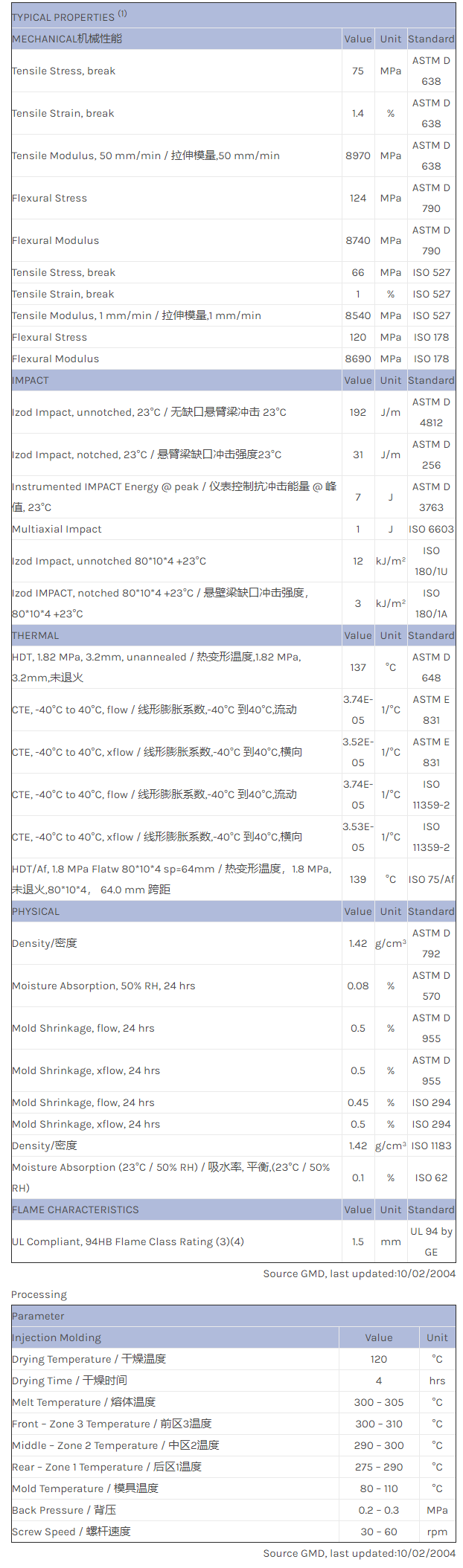 肇庆LNP THERMOCOMP ZFM62P是一种聚苯醚+PS(PPE+PS)产品,含有的填充物为10%玻璃纤维增强材料和30%云母填料,可以通过注射成型进行加工。